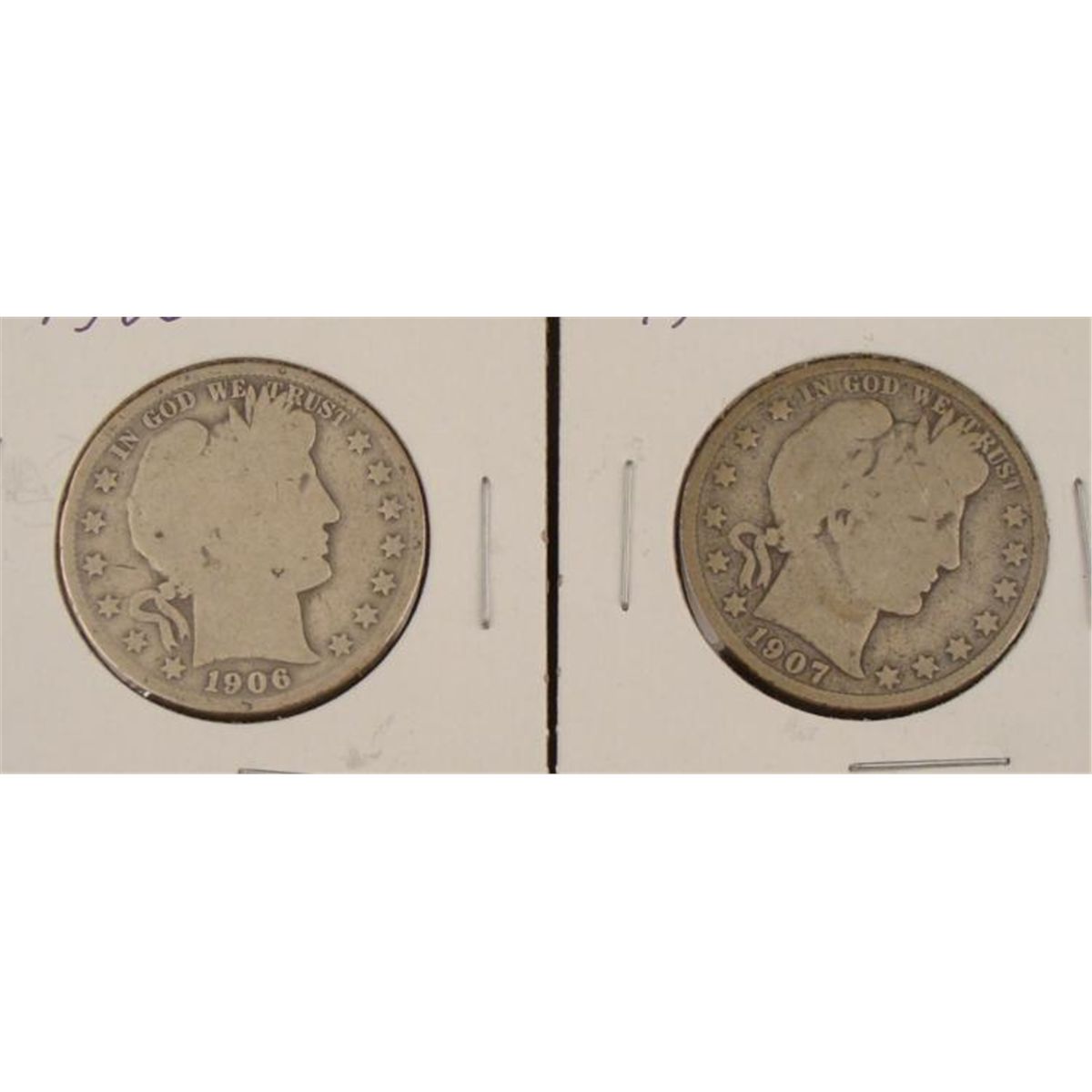 2 Diff Barber Half Dollar Dates 1906-D, 1907-D