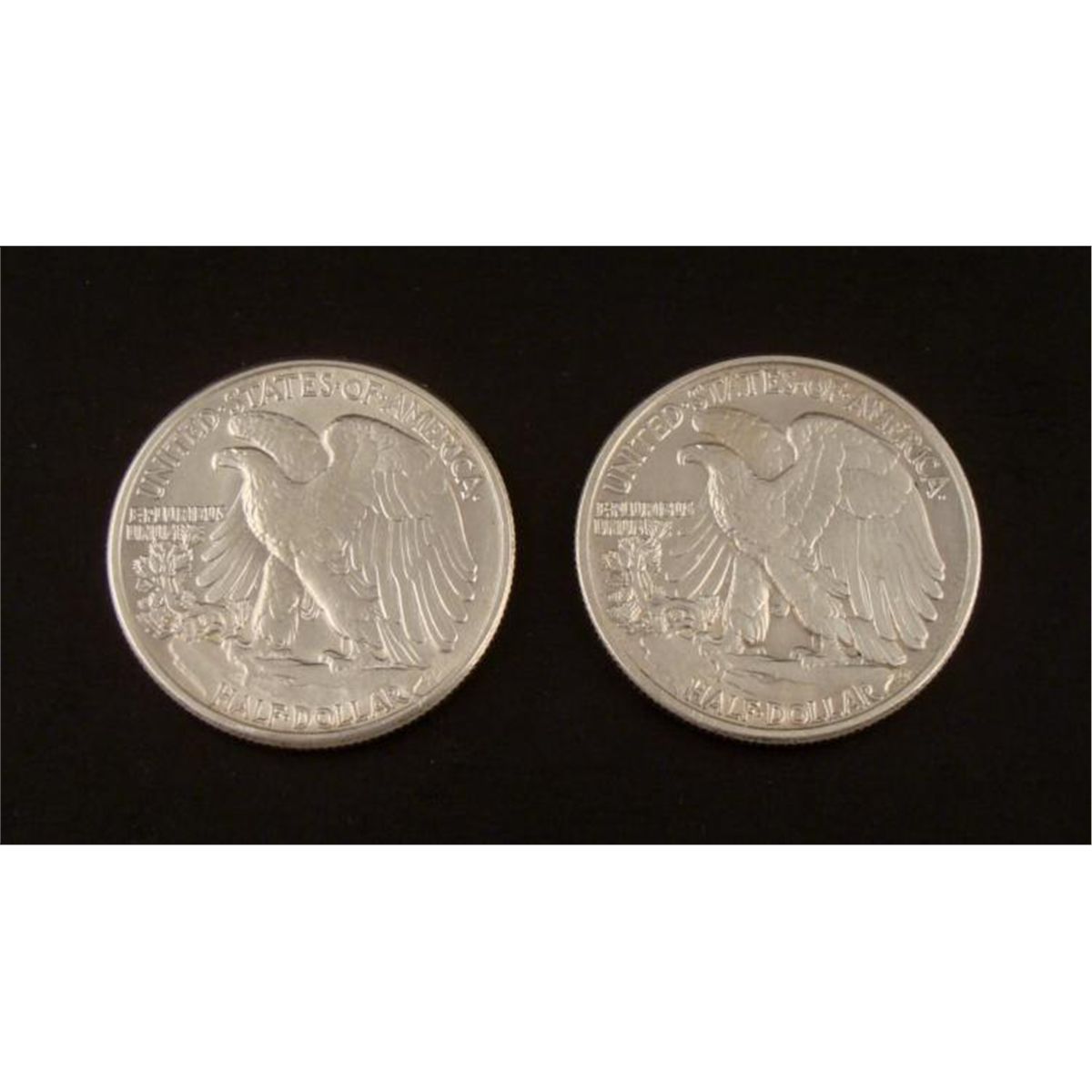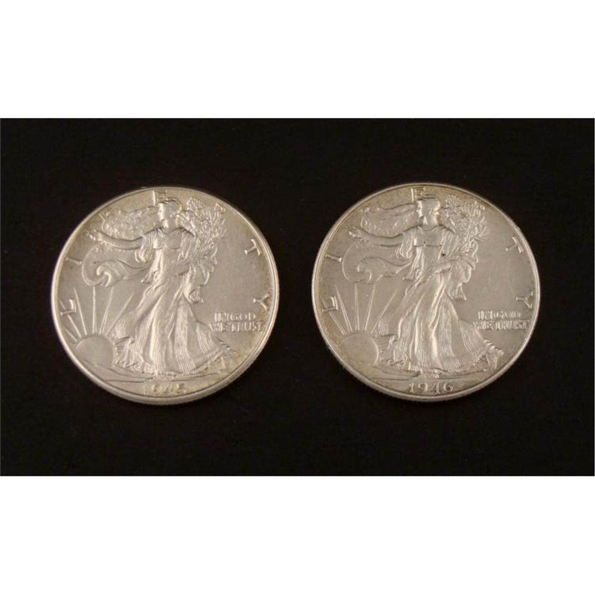 2 Different date Walking Liberty Silver Half DollarsDates: 1945, 1946Condition: Very Hi-Grade