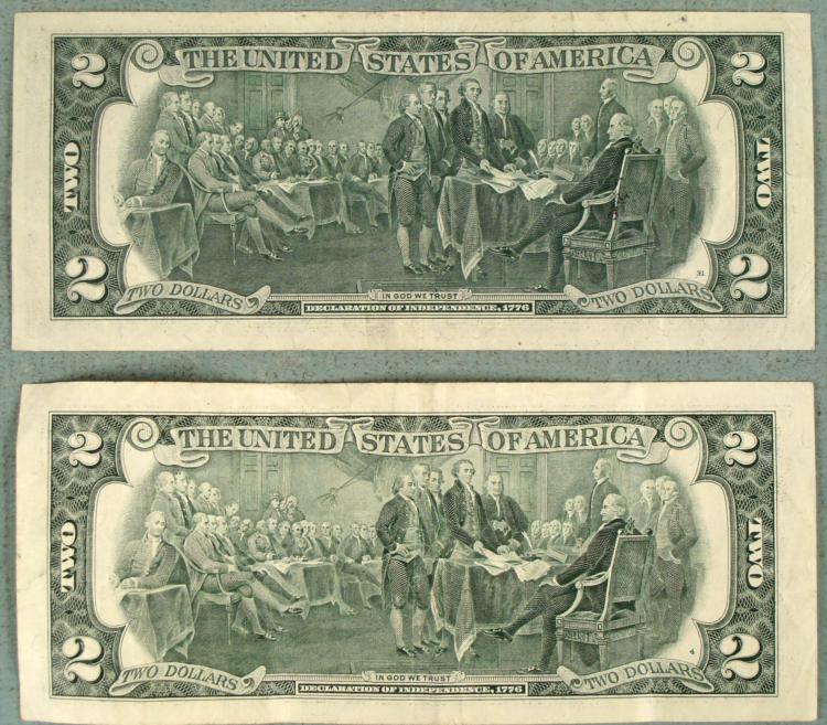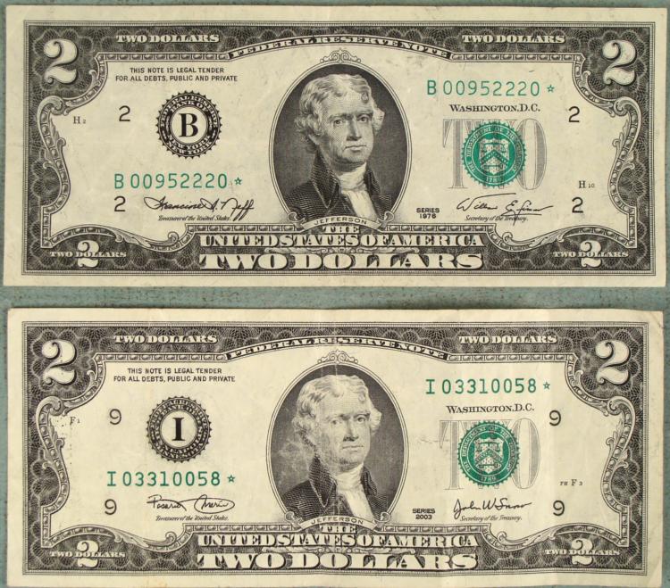 (2) different $2 Star Notes, 2003 and 1995 Mints: I (Minneapolis) and B (New York)