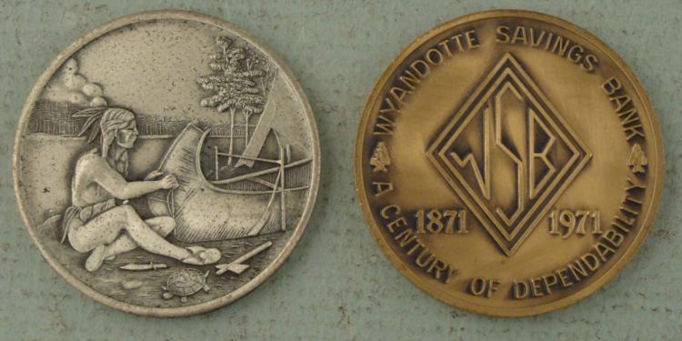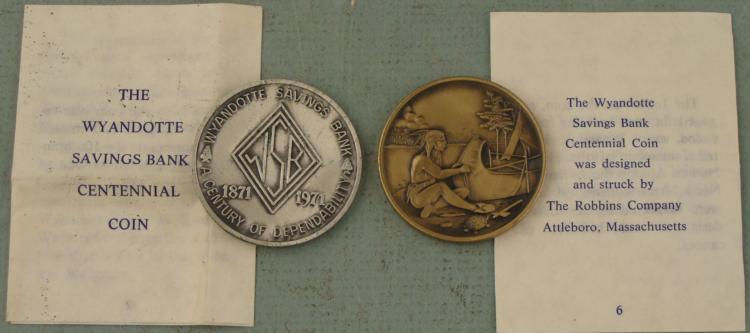 2 different Wyandotte Savings Bank Commemorative coins 1871-1971 * Size: Condition: Mint with paperwork