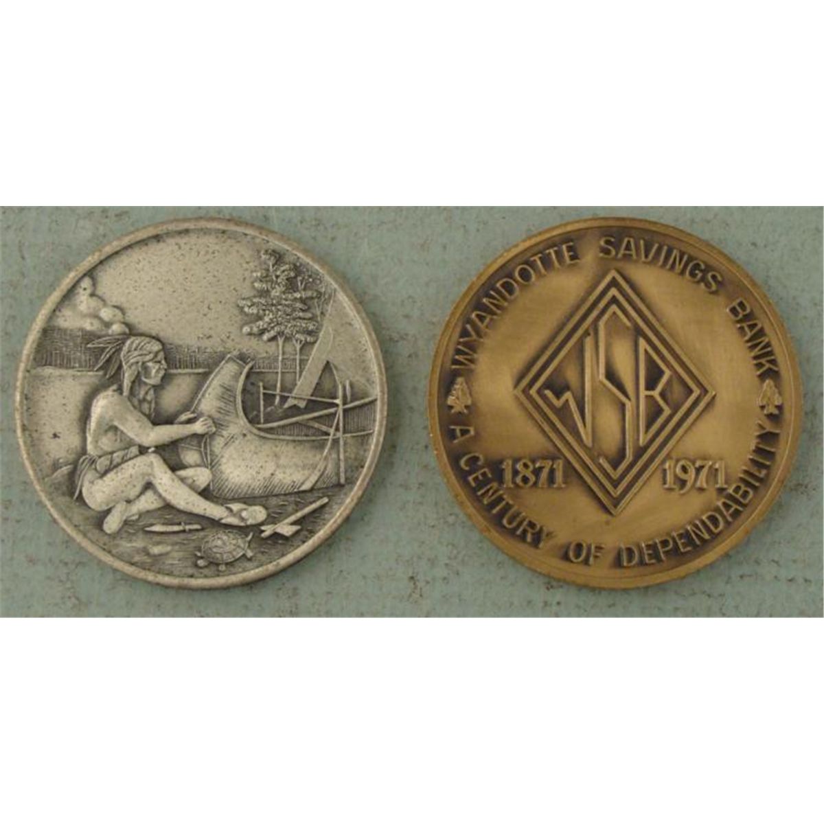 2 different Wyandotte Savings Bank Commemorative coins 1871-1971 * Size:Condition: Mint with paperwork