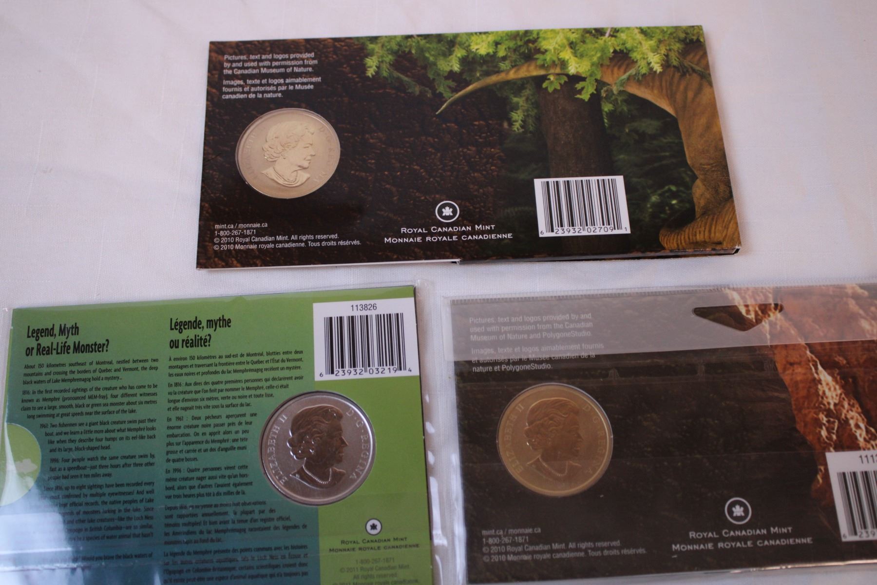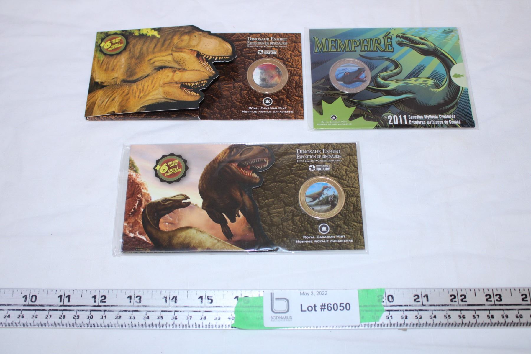 (2) Dinosaur coin + trading card sets - (1) 2011 Canadian Mythical creatures