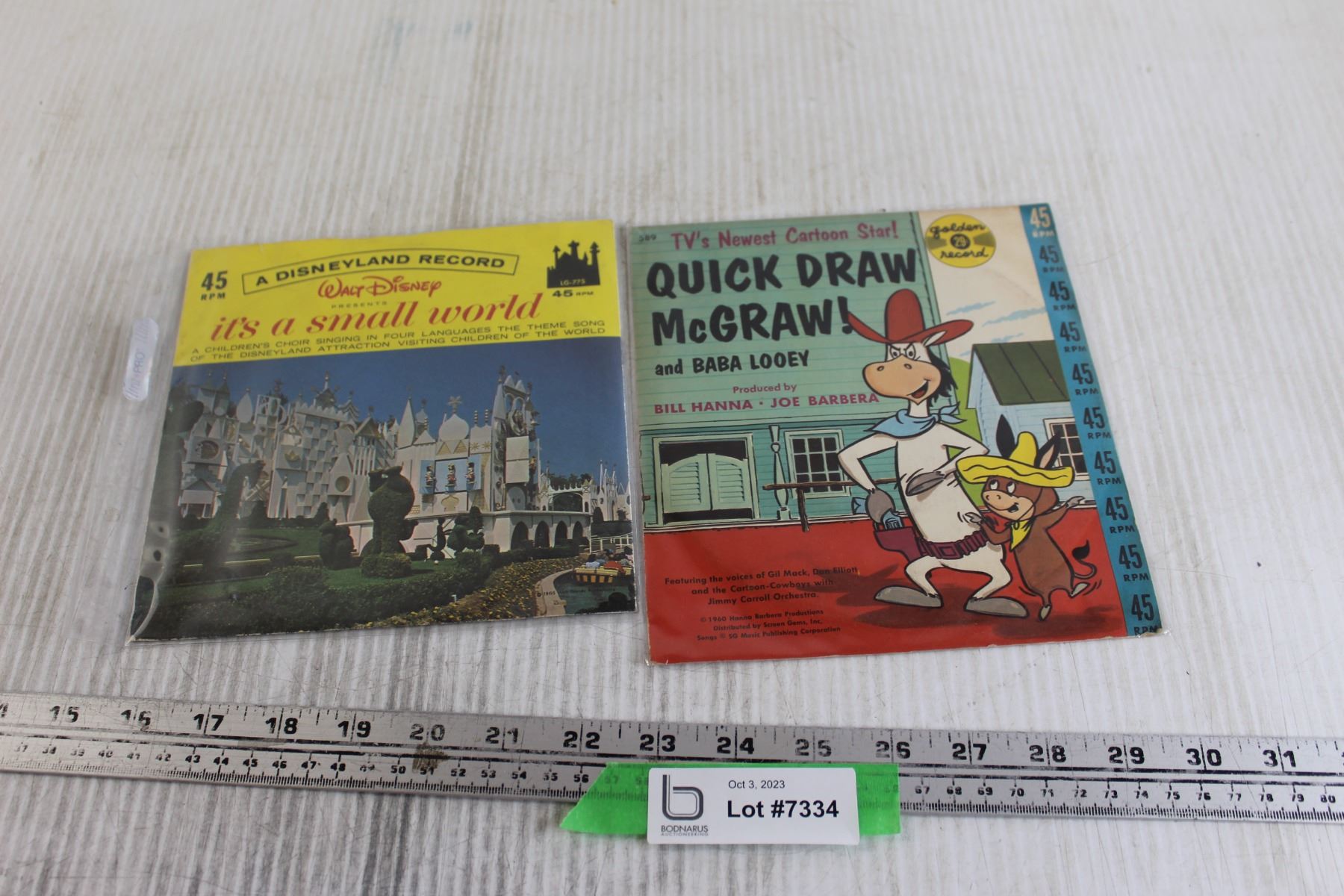 (2) Disney 45 Records - It's a Small World, Quick Draw McGraw! and Baba Looey