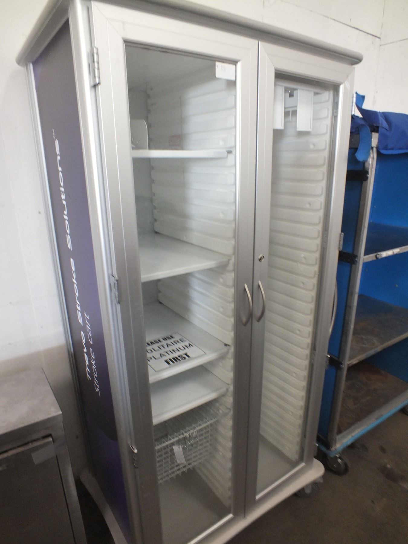 2 Door Metal Storage Cabinet On Wheels, no keys, 37"l 26"d 80"h...used