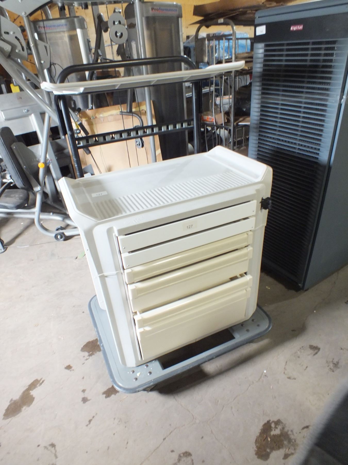 2 Door Metal Storage Cabinet & Storage Cart On Wheels all for one money...used