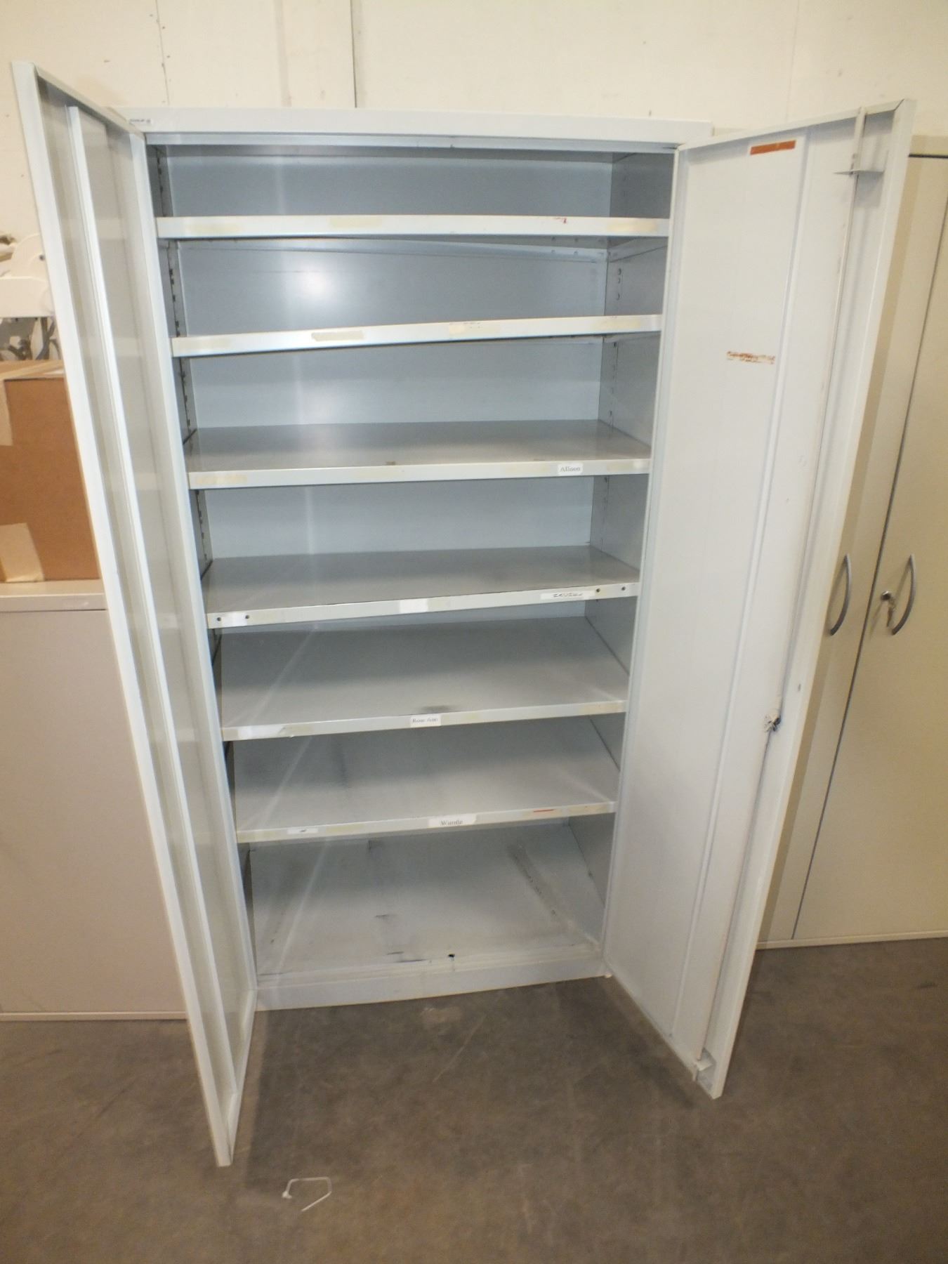 2 Door Metal Storage Cabinet, no key, 36"l 20"w 72"h...used