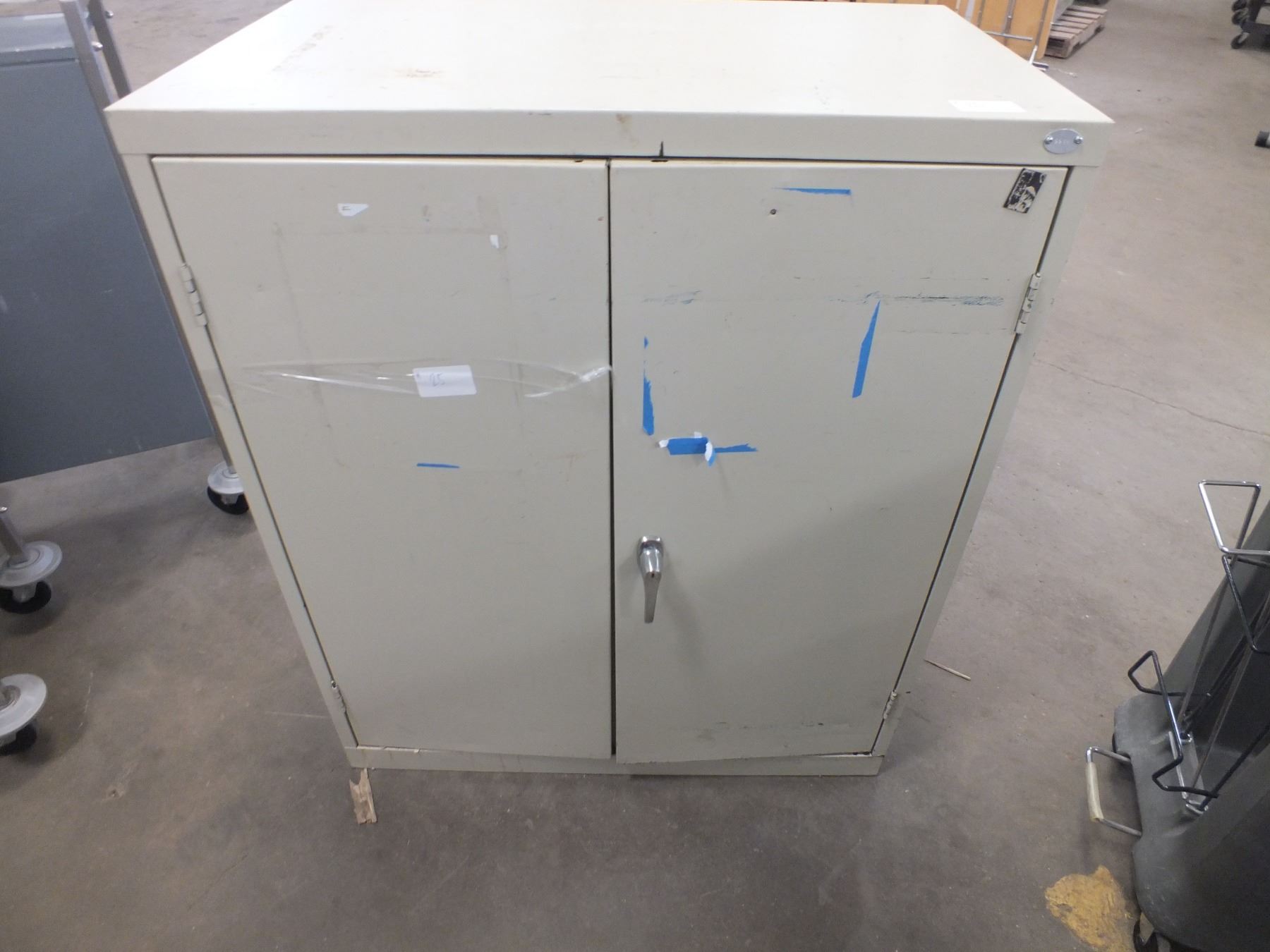 2 Door Metal Storage Cabinet, no keys, 36"l 27"w 32"h...used