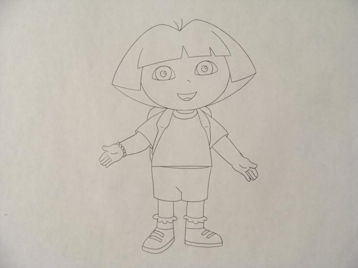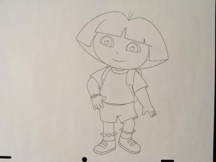 Dora is seen here with her trusty backpack, ready to explore. Medium: Black pencil on white paper, with animator notations; the bottom of each sheet has peg holesSize: 10 1/2 x 12 1/2 inchesCertificate of Authenticity includedCondition: Excellent Share the excitement of Dora's adventures by getting these exciting original animation drawings!