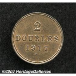 <B>2 Doubles 1917-H,</B></I> KM12, rarest date of this series. Red and brown nearly UNC. <BR><BR><B>Important notice:</B> Heritage usually auctions material at the rate of 200-250 lots per hour. On some occasions eBay Live bid software or the Internet may not be able to keep up with the pace of the auction. We recommend placing a realistic absentee bid now as insurance to avoid disappointment. Occasionally the auctioneer may eliminate or reject an eBay Live bid, and the auctioneer may also reopen a lot after the close of the eBay live bidding (usually because we missed an audience bid), and may reject your bid even if it shows you as the winning bidder. By bidding via eBay Live, you agree that Heritage may award the lot to another bidder at its sole discretion under the circumstances described above or any other reasonable circumstances. Since eBay bids are not shown to us until we open the lot on the floor, we treat those bids just like floor bids. In most cases the floor responds before the eBay bid is presented to us, due to Internet lag time, so for consistency we have made it a policy that floor bids are always considered first over tie eBay live bids. Also please note that all Heritage lots purchased through eBay Live carry a 20% Buyer's Premium. Please make sure you read the Terms and Conditions before you bid.