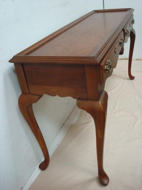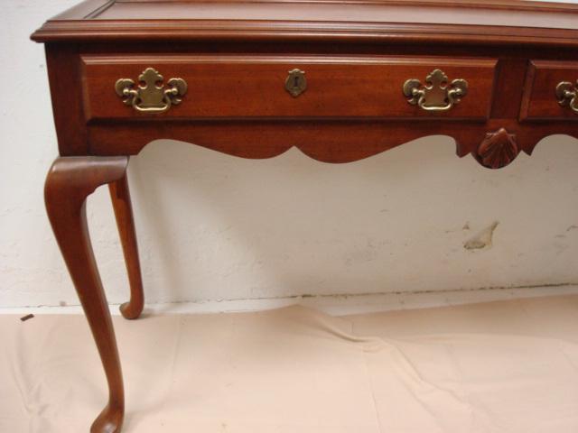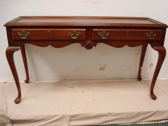 2 Drawer Chippendale Style Mahogany Hall Table: Queen Anne Legs and Shell Carving on Apron. Brass Pulls. (100-200)