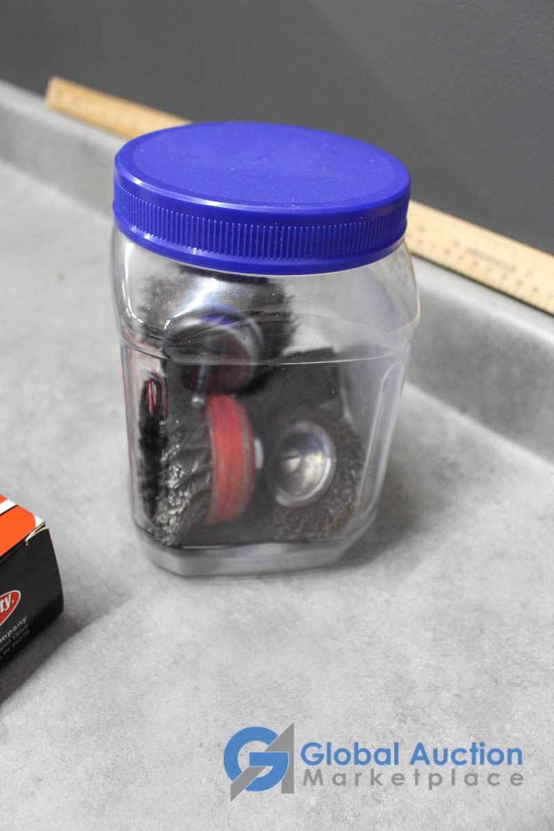 (2) Drill Bit Organizers w/ Contents, Wire Brushes for Drill & Safety Glasses