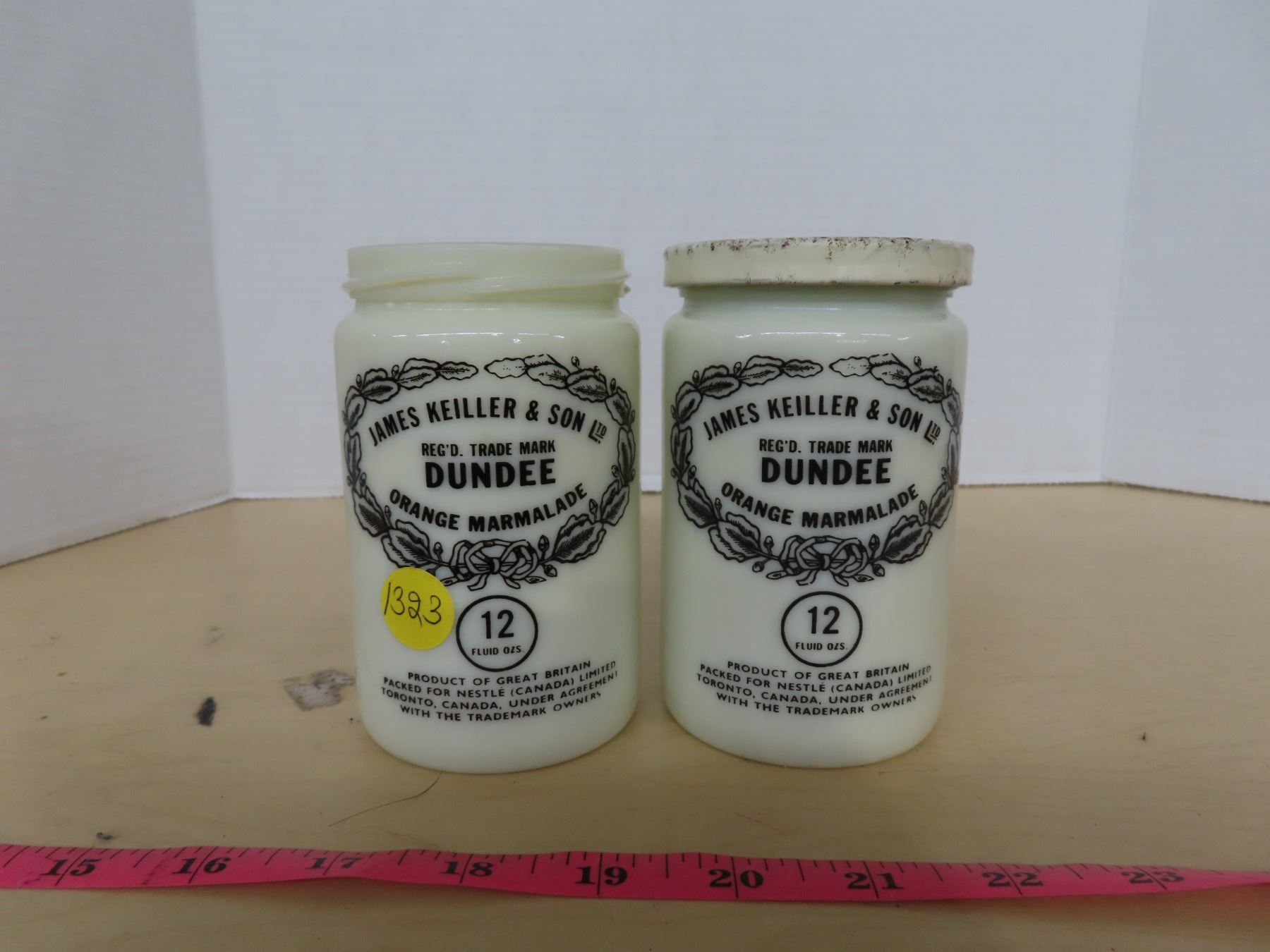 2 Dundee orange marmalade jam jars ( one with lid one without)