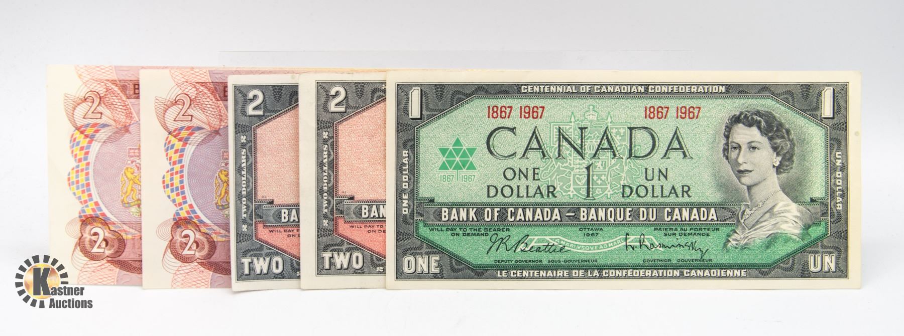 1974 CANADIAN TW0 DOLLAR BILLS: 1 EACH 1867 - 1967 CANADIAN ONE DOLLAR BILL **ALL ITEMS MUST BE REMOVED BY 5PM SATURDAY, DECEMBER 7TH 2024. ALL REMAINING ITEMS WILL BE SUBJECT TO A $6.00 PER DAY STORAGE CHARGE. ANY ITEMS REMAINING AFTER MONDAY, DECEMBER 23RD 2024 WILL BE CONSIDERED FORFEITED. NO REFUNDS WILL BE ISSUED FOR FORFEITED ITEMS. TO SCHEDULE A PICK UP APPOINTMENT CLICK HERE
