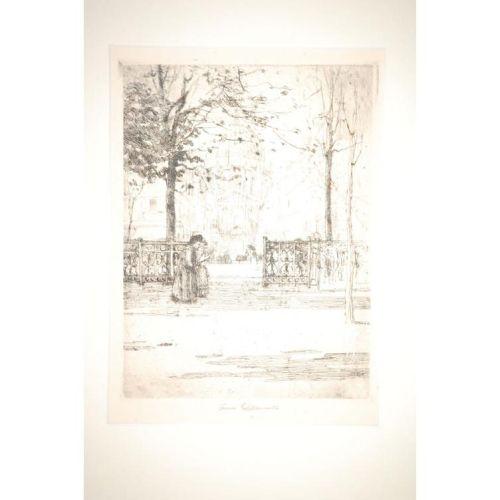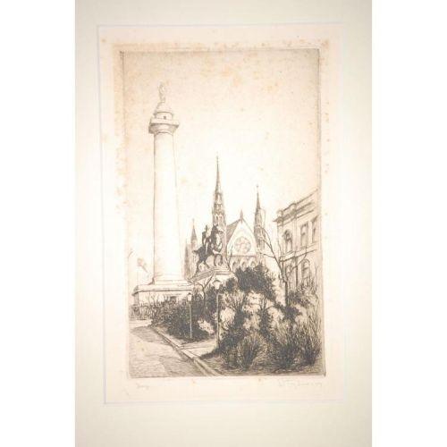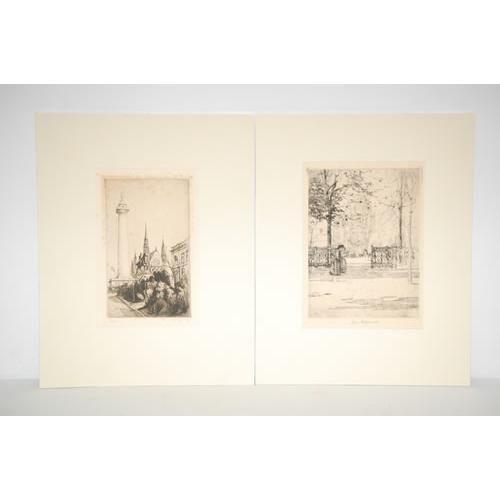 (2) EARLY 20TH CENT. ENGRAVINGS OF CONTINENTAL ARCHITECTURE: 1 APPEARS TO BE BY SONTAG & 1 UNCLEAR- POSSIBLY BOTH FRENCH PARIS SCENES, MATTED & UNFRAMED (SONTAG?-8 1/8" X 5 1/8"; TONING & FOXING)(UNCLEAR- 8 5/8" X 6 1/8"; TONING & FOXING)