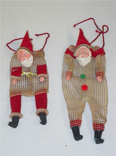 (2) EARLY JAPANESE PAINTED PAPIER MACHE & MESH SANTA CANDY CONTAINERS (11" & 9 1/2") - LOSSES & IMPERFECTIONS