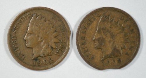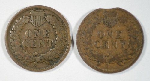 2 EDGE CLIP ERROR INDIAN HEAD CENTS 1899, 1902 NICE CIRC COINS