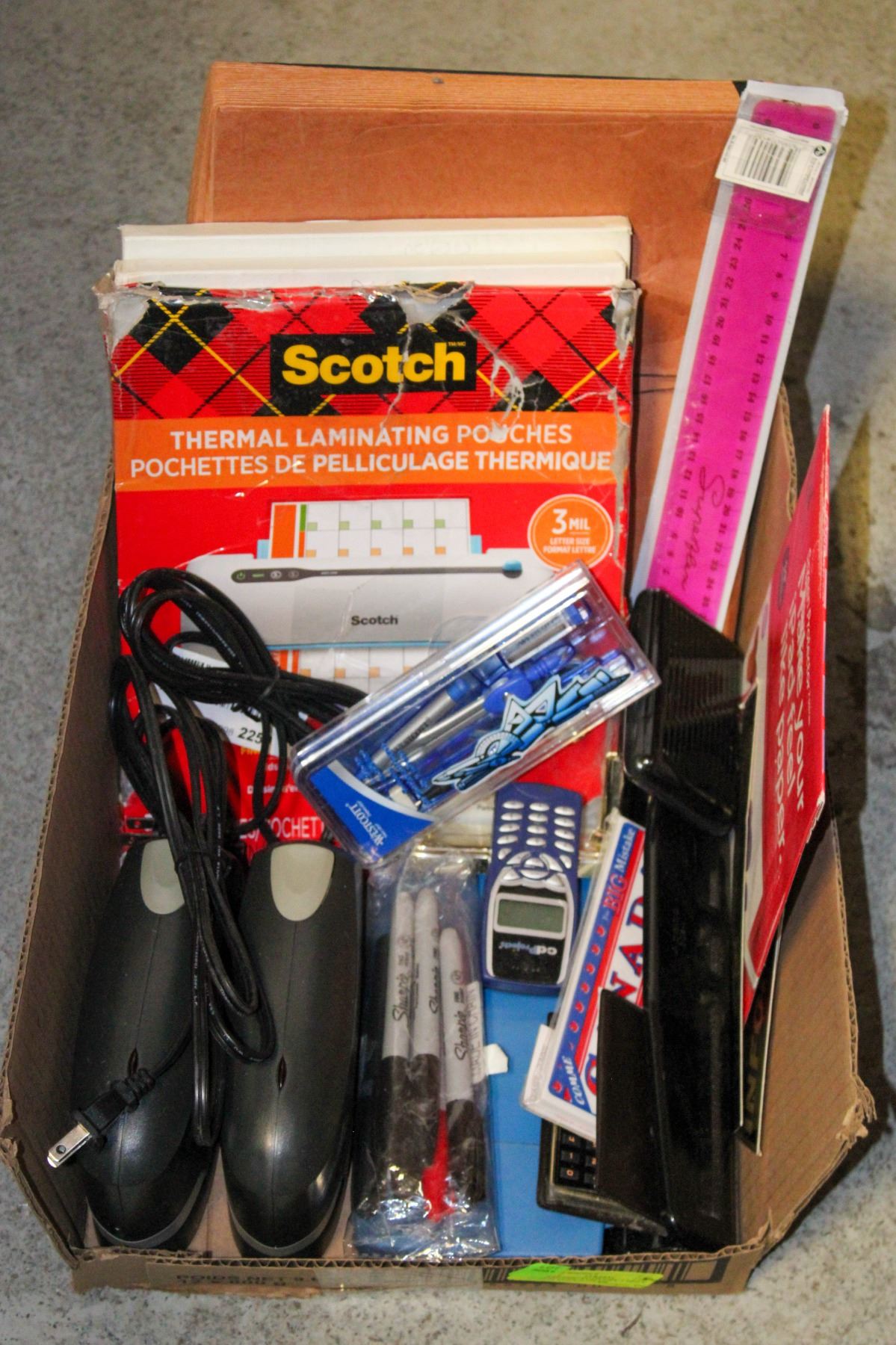 CALCULATORS, SHARPIES, PENS, LAMINSTING POUCHES, GRAPH PAPER