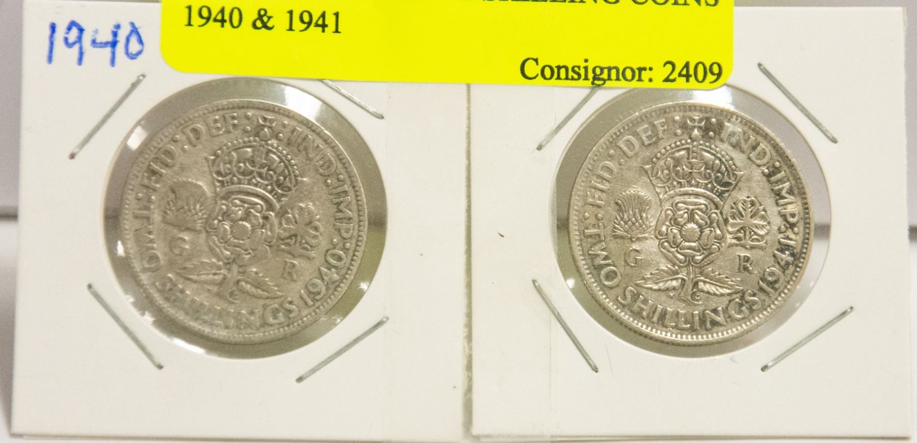 2 ENGLISH SILVER SHILLING COINS 1940 & 1941