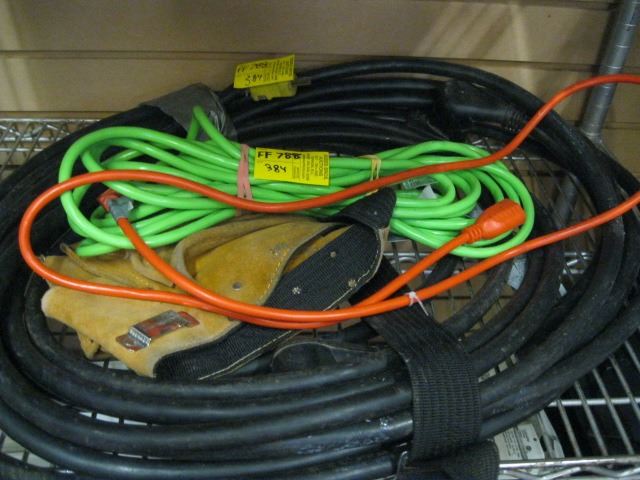 2 EXTENSION CORDS, RV EXTENSION CORD & A NAIL POUCH.