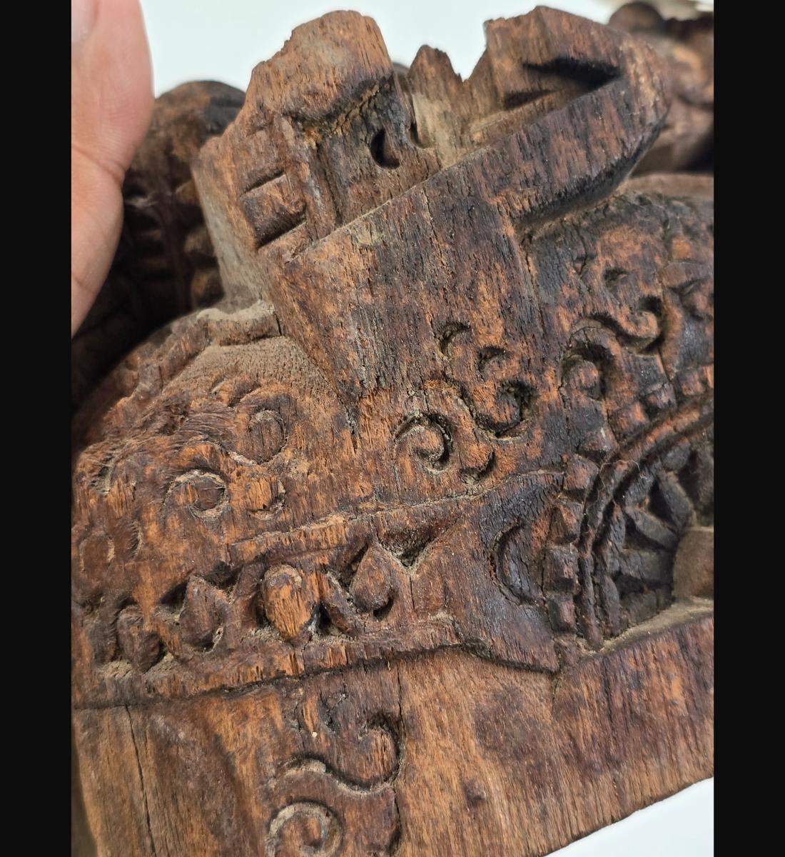 Lot Of 2 Early Hand Carved Wooden Architectural Pieces, Probably 18-19th Century. Measure 7" X 9" X 6" And 8" X 5" X 4,5". Provenance: One Person Private Estate Central Florida.