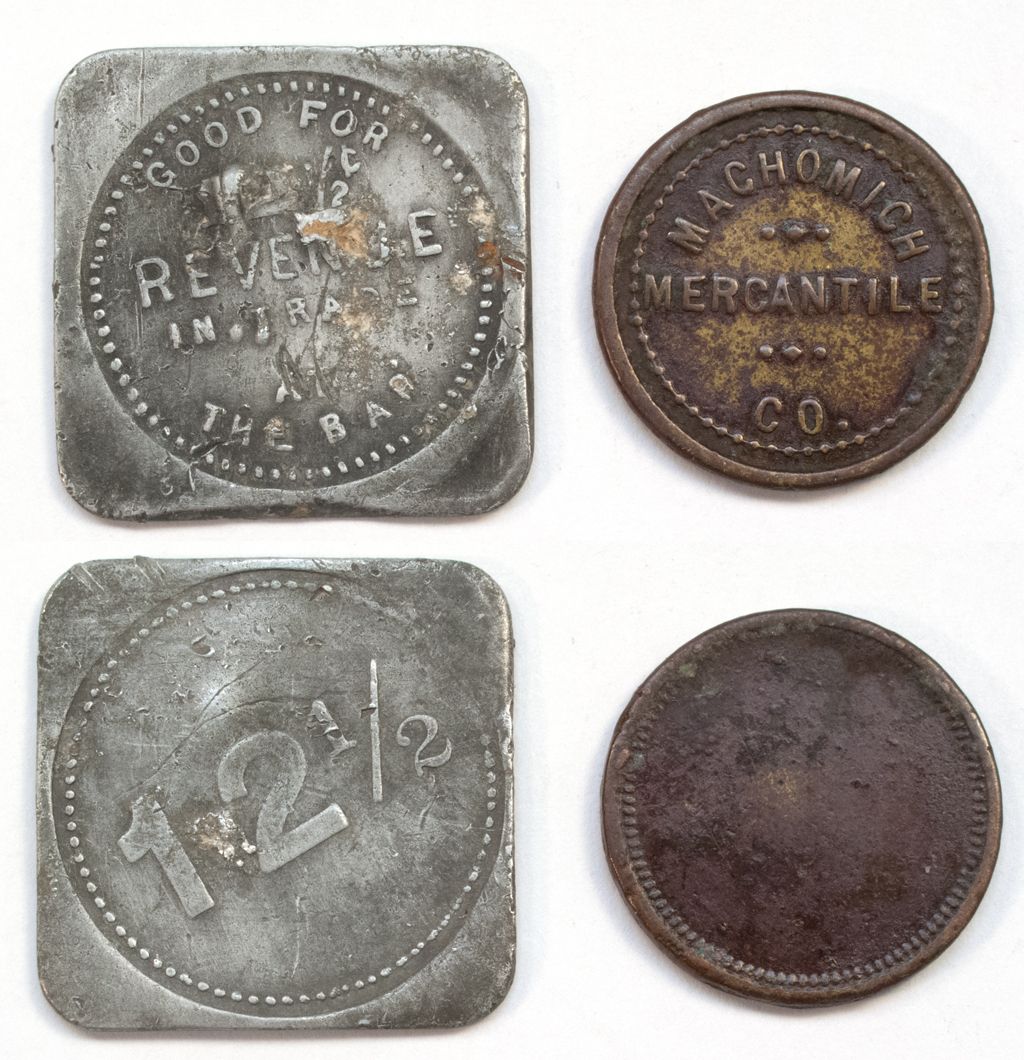 (2) MACHOMICH MERCANTILE CO. Brass, REVENUE 12½¢ Square Aluminum (Unlisted Arizona Token)