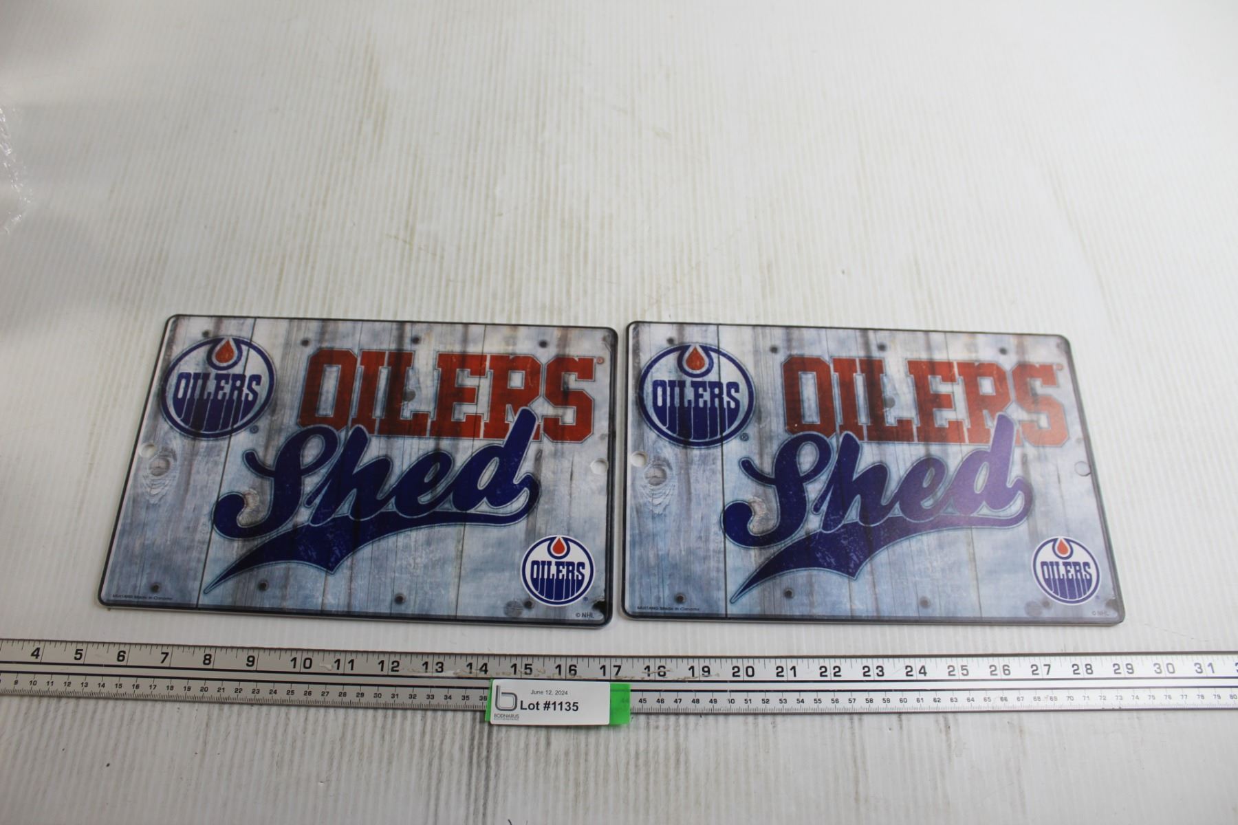 (2) Edmonton Oilers Shed Signs - 1ft x 8"