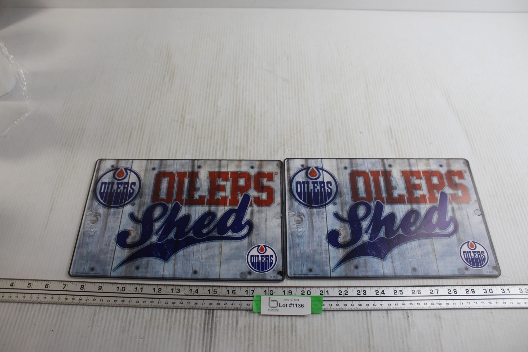 (2) Edmonton Oilers Shed Signs - 1ft x 8"