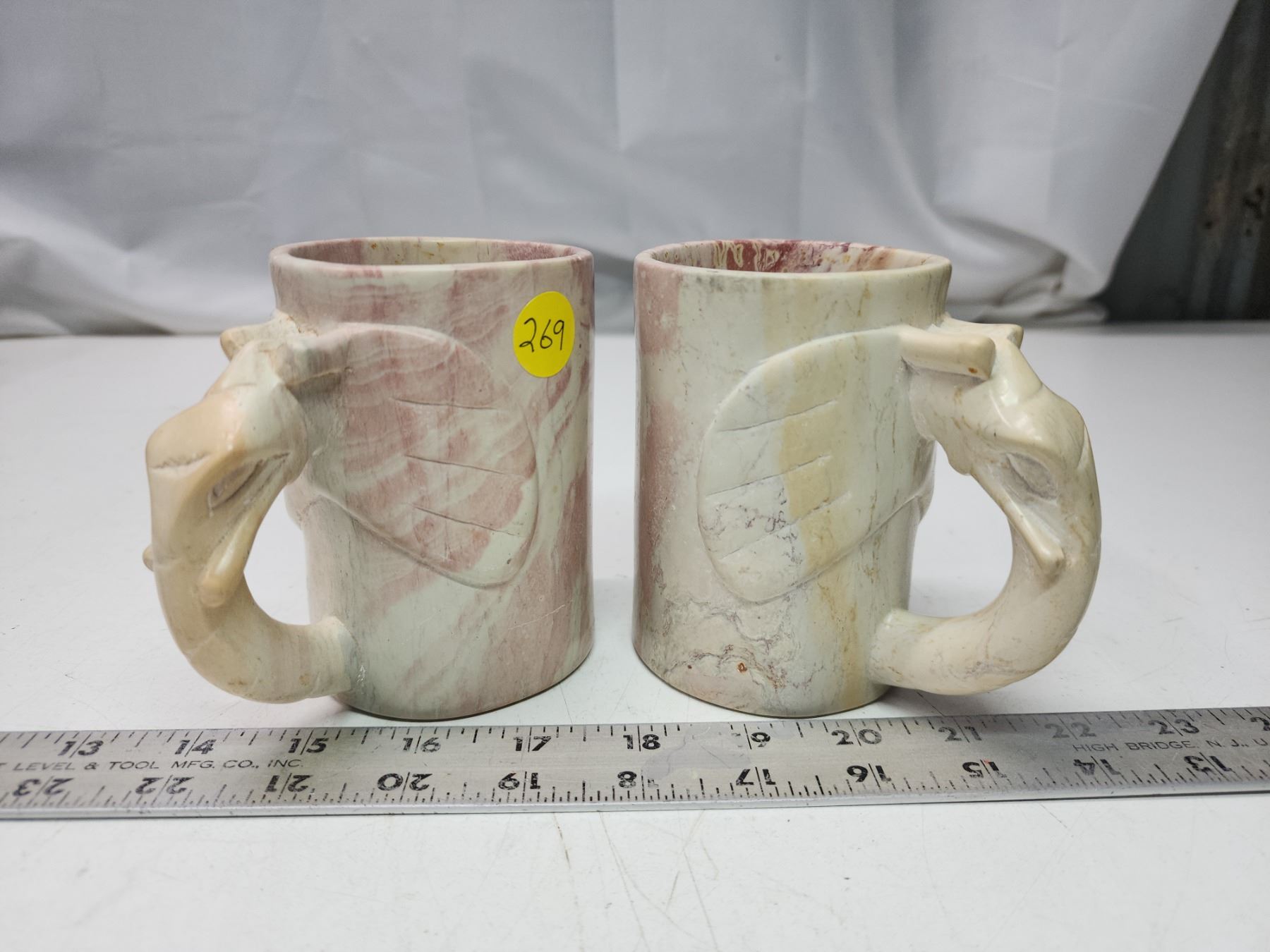 2 Elephant stone carved mugs