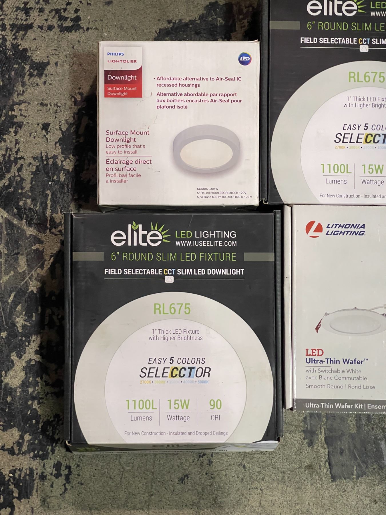 2 Elite 6" Round Slim Led Fixture (RL675), Philips Mount Downlight, 6" Led Ultra-thin Wafer Kit