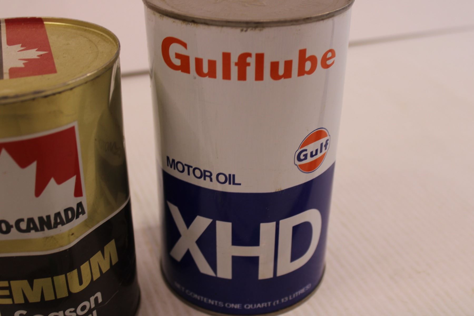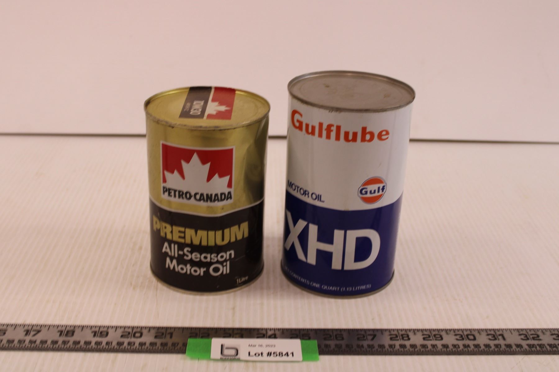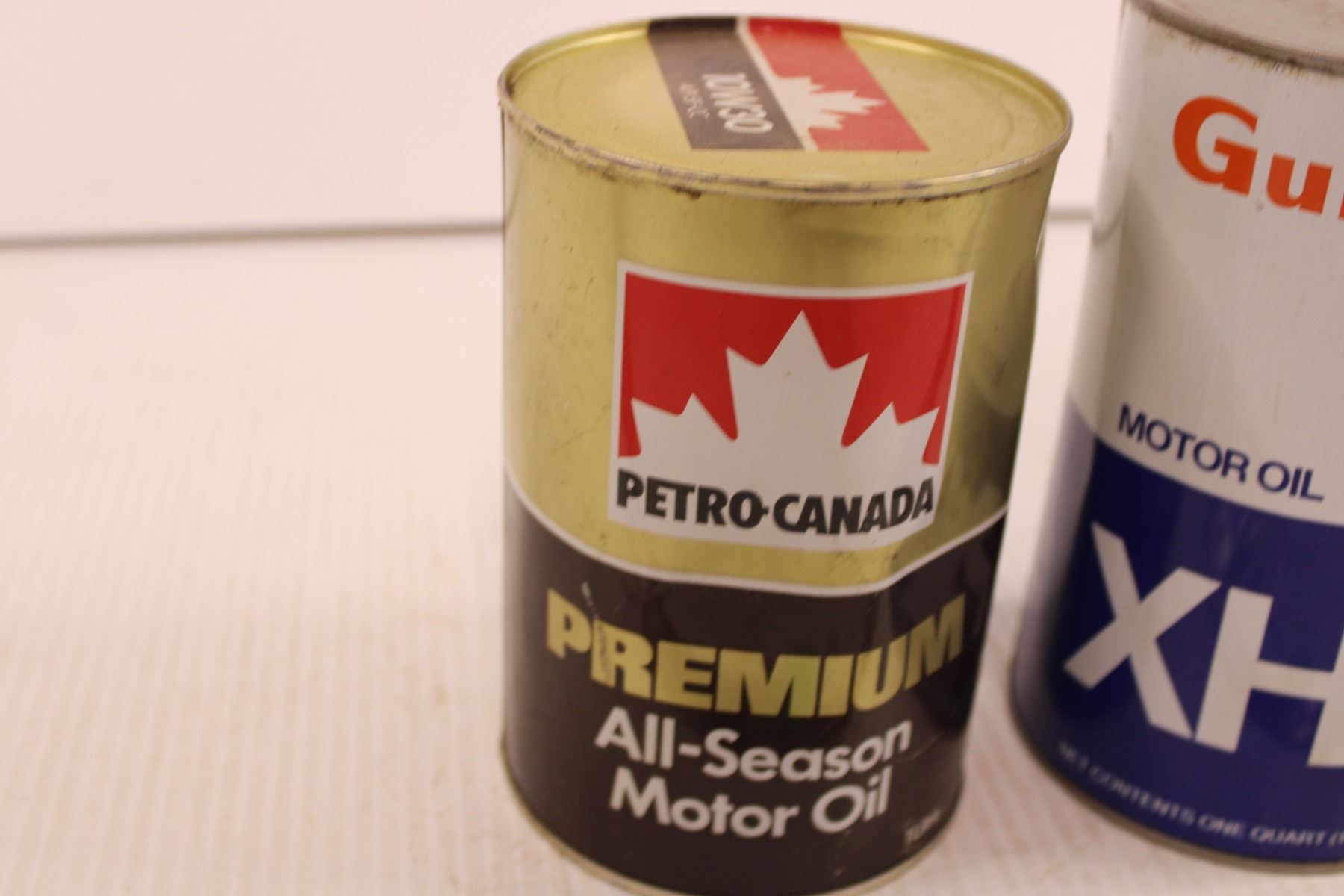 (2) Empty 1L & 1.13L Petro-Canada & Gulf Lube Motor Oil Cans