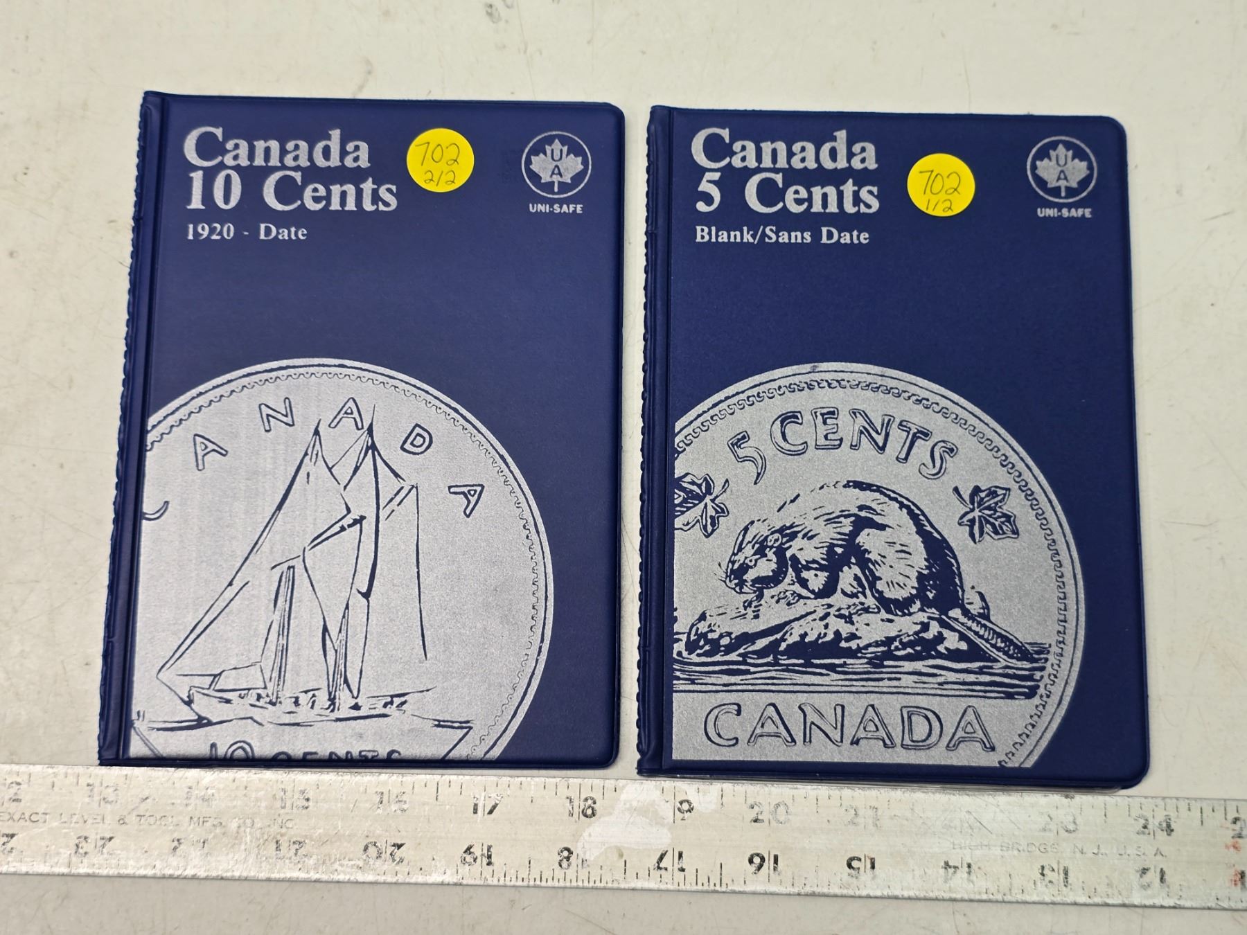 2 Empty Canadian coin albums - 5 cent & 10 cent