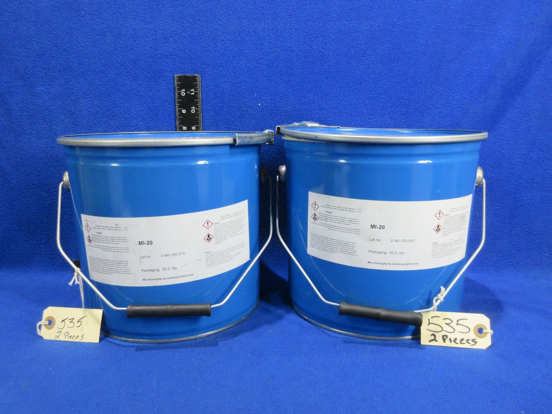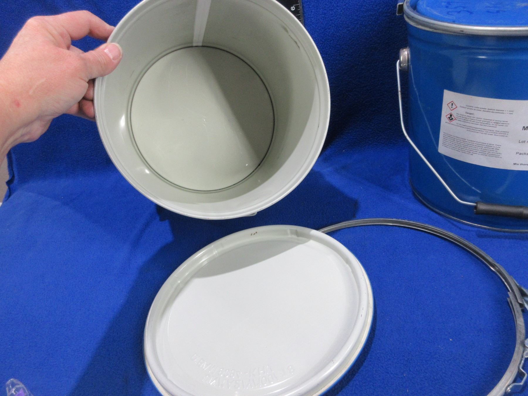 2 Empty Nickel Powder 50 lb Tins with Clamp-on Lids