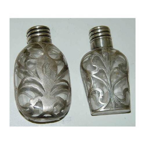 <tr><td>Title:2 Engraved Sterling Silver Overlay Bottles</td></tr>