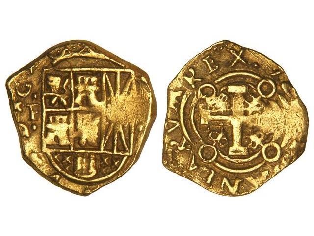 2 Escudos. 1728. NUEVO REINO. S. Última cifra del año apenas visible y nombre del rey parcialmente visible. RARA. Cal-383; KM-17.2 ´rare´ sin precio. MBC+.