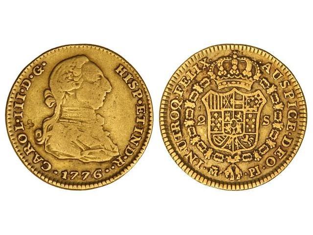 2 Escudos. 1776. MADRID. P.J. Pequeña contramarca flor de cuatro pétalos en anverso. Cal-449. MBC-/MBC.