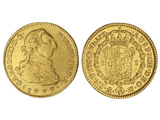 2 Escudos. 1777. MADRID. P.J. Restos de brillo original en reverso. (Pequeños golpecitos y rayitas en anverso). Cal-450. MBC-/MBC.