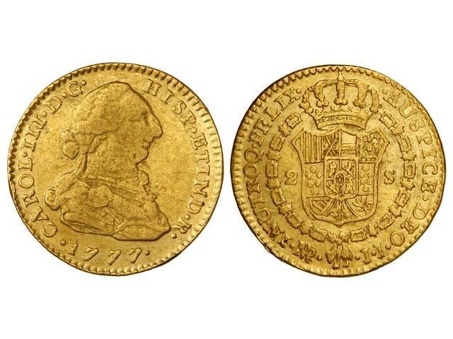 2 Escudos. 1777. NUEVO REINO. J.J. ESCASA. Cal-555. MBC-/MBC.