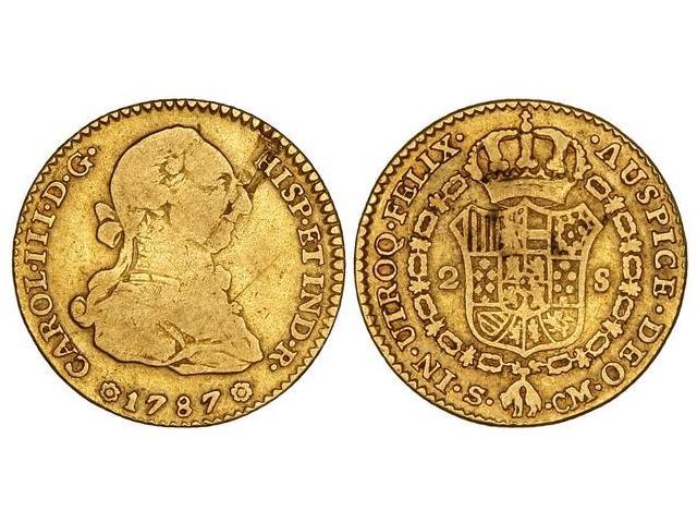 2 Escudos. 1787. SEVILLA. C.M. (Hoja en anverso). Cal-582. BC+/MBC-.