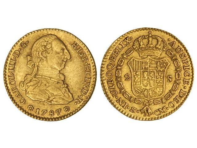 2 Escudos. 1787. SEVILLA. C.M. (Rayita en anverso). Cal-582. MBC+.
