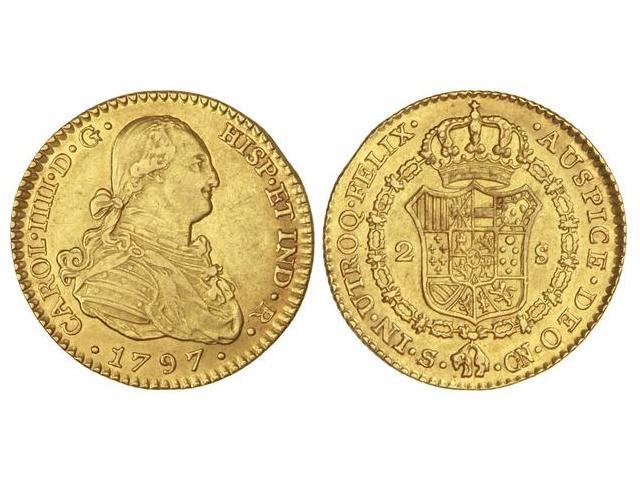 2 Escudos. 1797. SEVILLA. C.N. Cospel ligeramente segmentado. Cal-449. MBC+/EBC-.