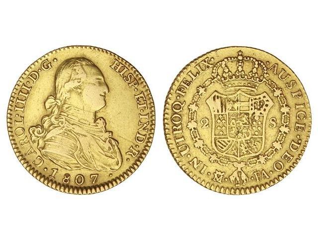 2 Escudos. 1807. MADRID. F.A. (Probablemente ha estado en aro. Pequeños golpecitos). Cal-350. MBC-.