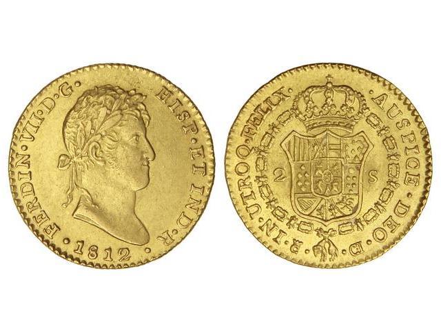 2 Escudos. 1812. CADIZ. C.I. Ceca pequeña. Brillo original. Cal-180. EBC/EBC+.