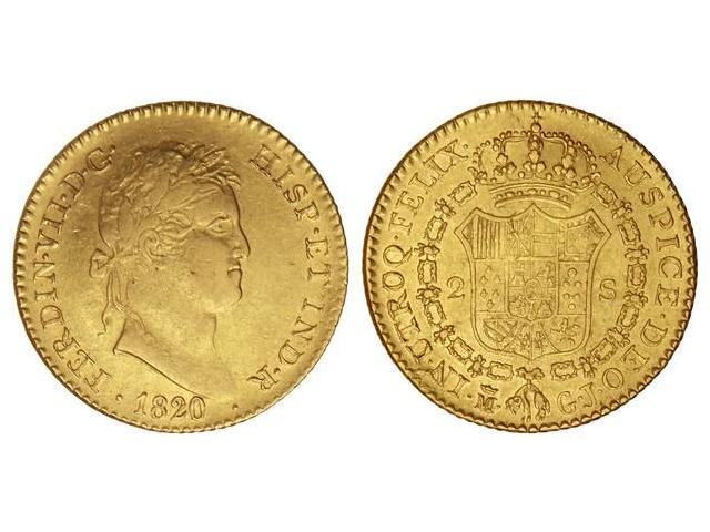 2 Escudos. 1820. MADRID. G.J. Acuñación floja en parte en reverso. (Pequeños golpecitos). Cal-217. MBC.