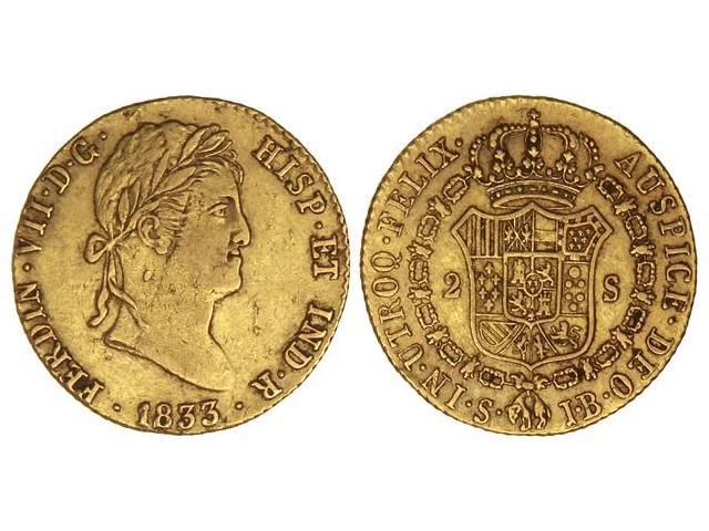 2 Escudos. 1833. SEVILLA. J.B. (Pequeños golpecitos). Cal-277. MBC.