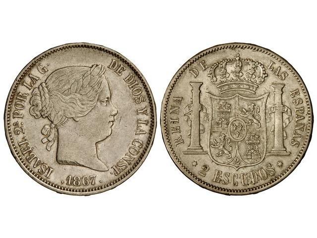 2 Escudos. 1867. MADRID. (Leve rayita en anverso). Cal-204. MBC-.