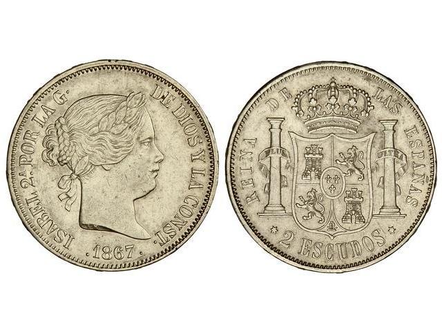 2 Escudos. 1867. MADRID. (Pequeños golpecitos). Cal-204. MBC+/EBC-.