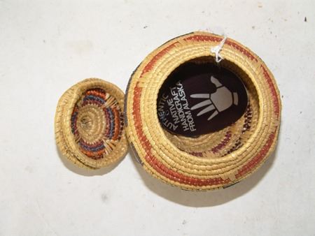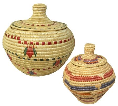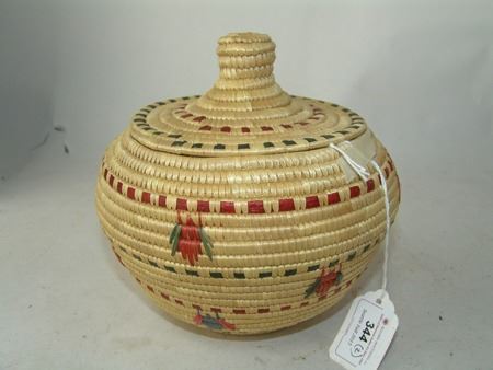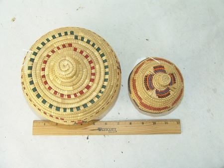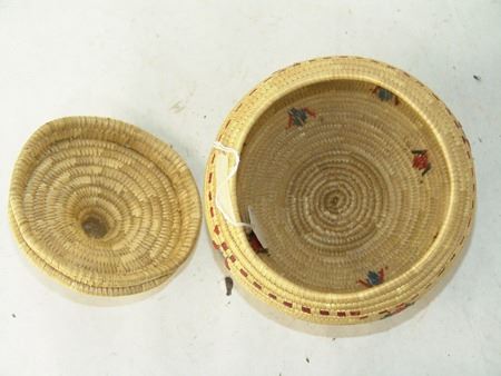 Late 1900s, The larger lidded version with bug figures, the other from Hooper Bay done by Pauline Welliford. Both in excellent condition. 7" x 7" & 5" x 4-1/2"