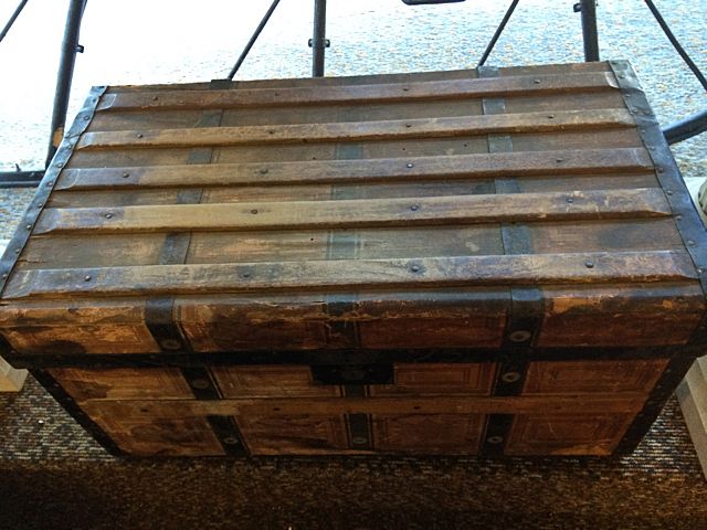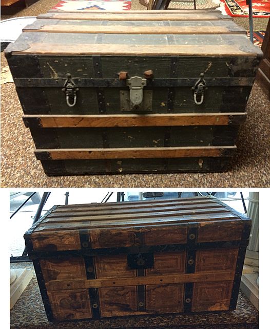 2 Estate Steamer Trunks; Nice finishes on both, original shelf and grain patina. Both are in nice shape. Very nice steamer trunks. These items may be picked up in Torrington, CT. Appointment time will be scheduled after auction date.
