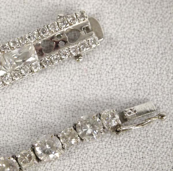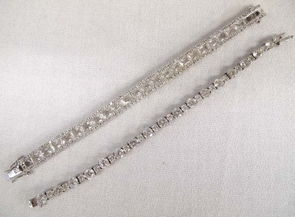From the Posey Estate, we have 2 Elegant Sterling Silver and CZ Bracelets, longest measures 7''L x .25''W, both are stamped .925, 44.9g in total wt.