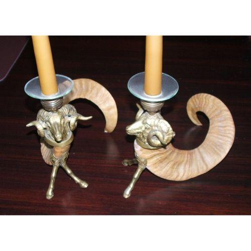 European. Un-attributable. 19th century. Brass and horn. 9" high each
